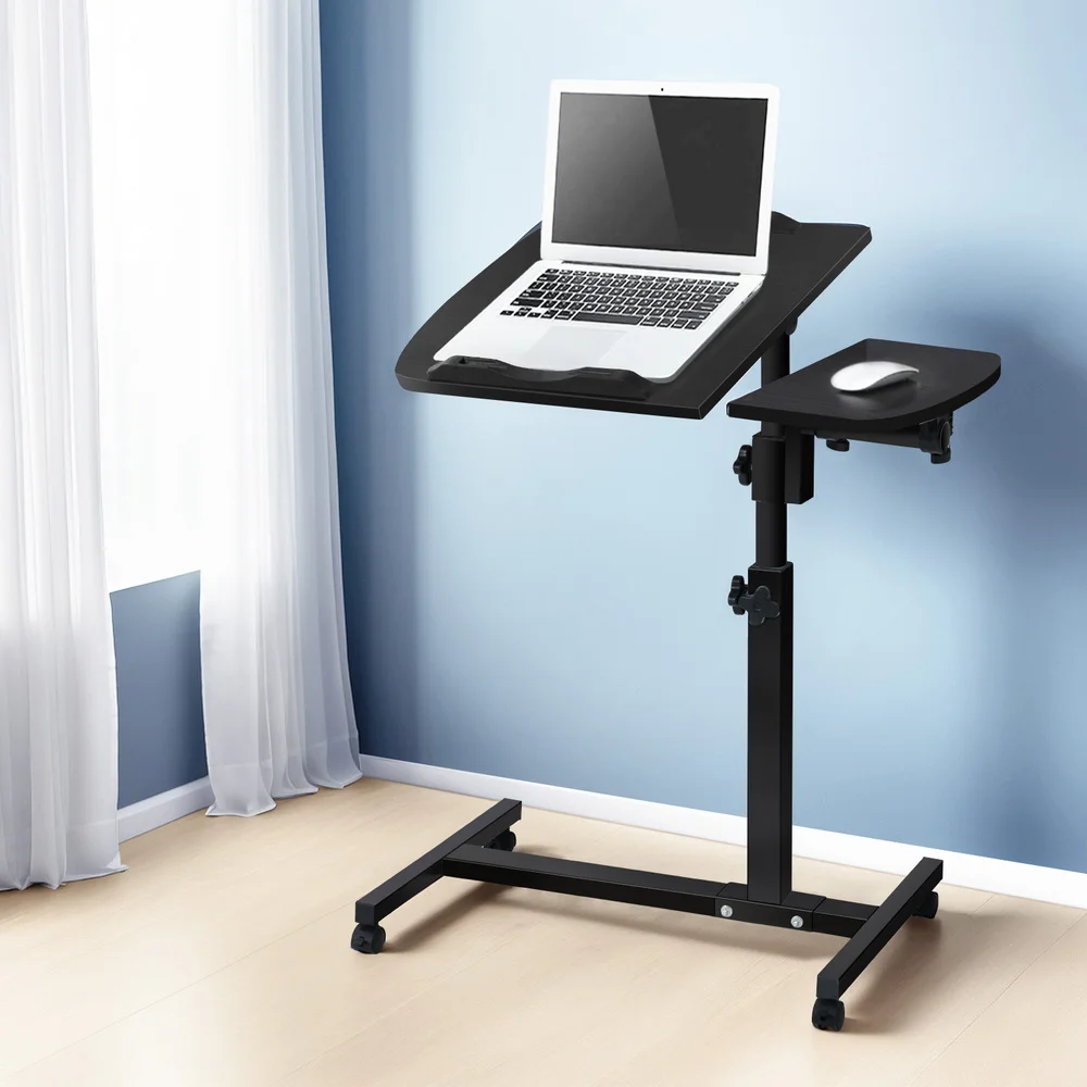 Upgrade your workspace with the Artiss 360 Rotating Mobile Laptop Adjustable Desk in sleek black. This versatile desk features adjustable tilt tabletops and stand height, offering unparalleled flexibility to cater to different sitting positions, making it suitable for all family members. The side stationary tabletop is perfect for holding drinks or snacks, keeping you refreshed while working. With 4 fully-lockable caster wheels, enjoy optimal manoeuvrability and stability. Designed for a seamless computing experience, this desk combines functionality with style.