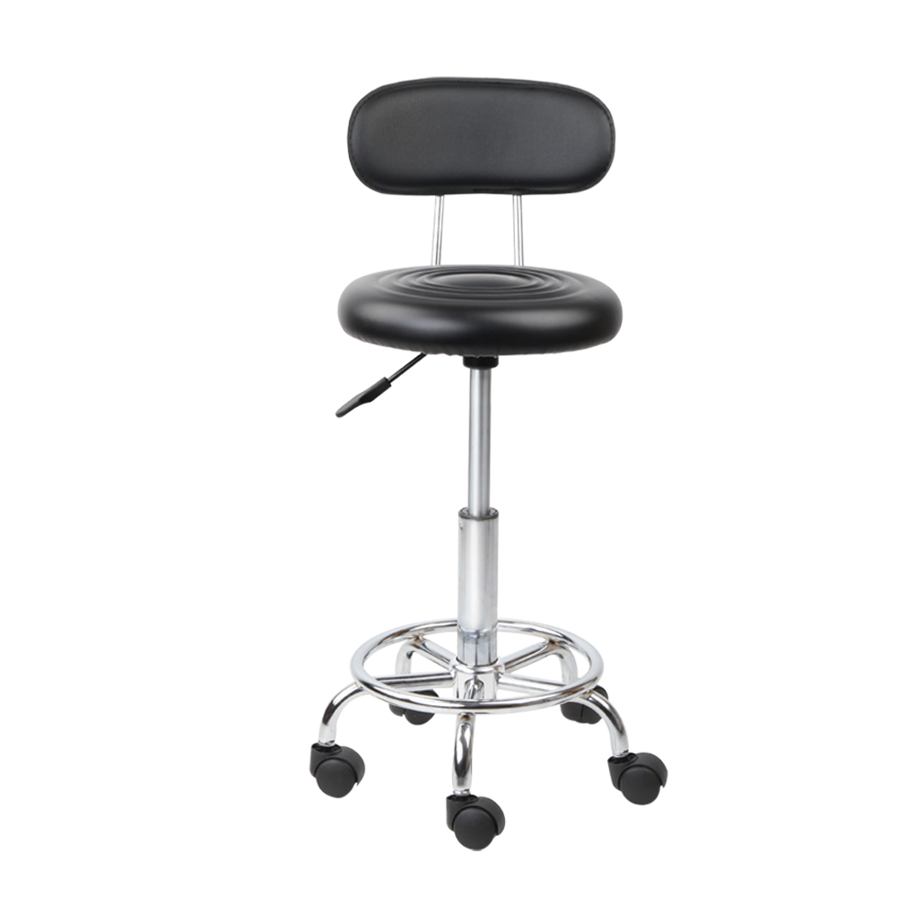 Artiss Salon Stool Swivel Chair - Black PU Leather, Adjustable Height, 360° Rotation, 5 Wheels, Chrome Base