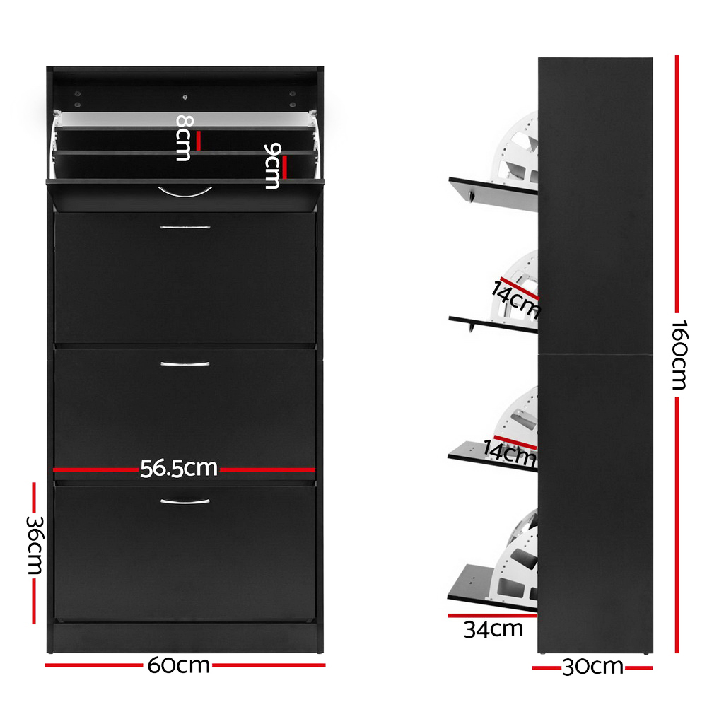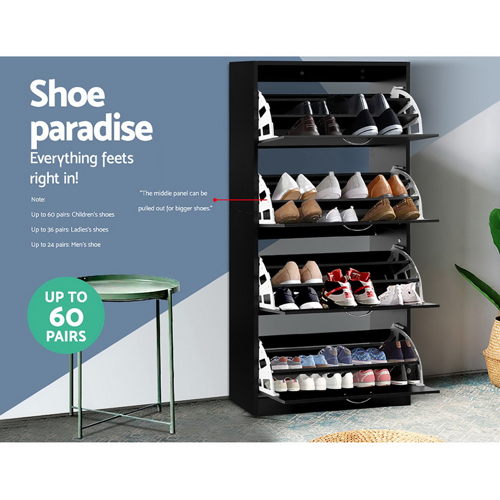 Artiss Shoe Rack Cabinet - Sleek Black Storage for 60 Pairs, 4 Doors, Adjustable Shelves, Space-Saving Design