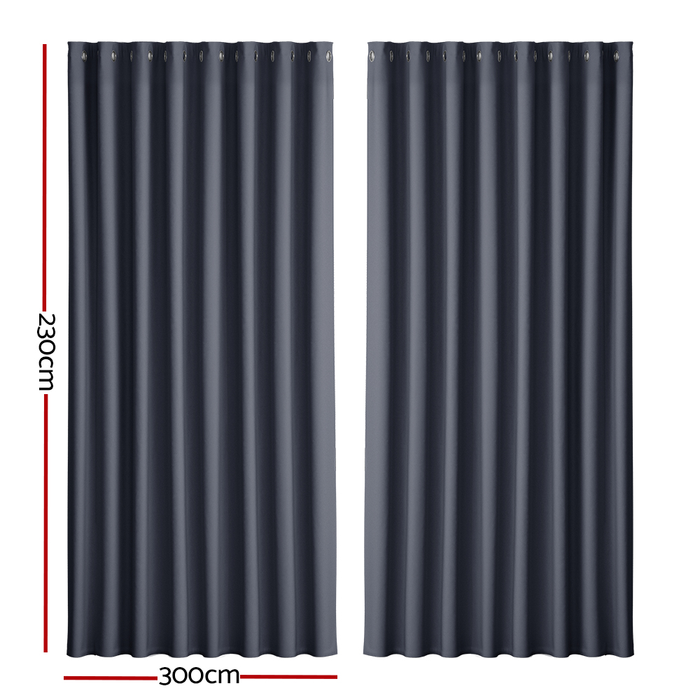 Artiss Blockout Curtains Eyelet Triple Weave Fabric 300x230cm Charcoal - Thermal Insulation & Noise Reduction