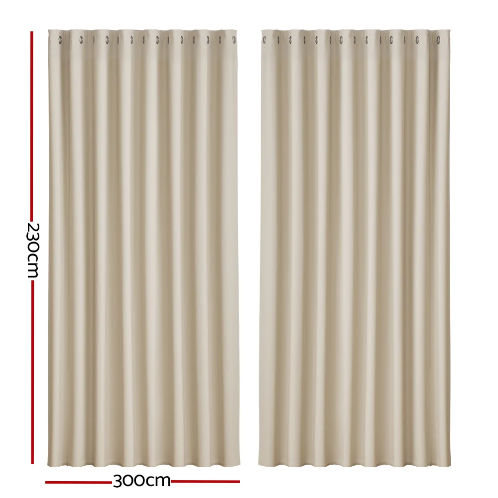 Artiss Blockout Curtains, Triple Weave Fabric, 300x230cm, Beige, Thermal Insulation & Noise Reduction, 2 Panels