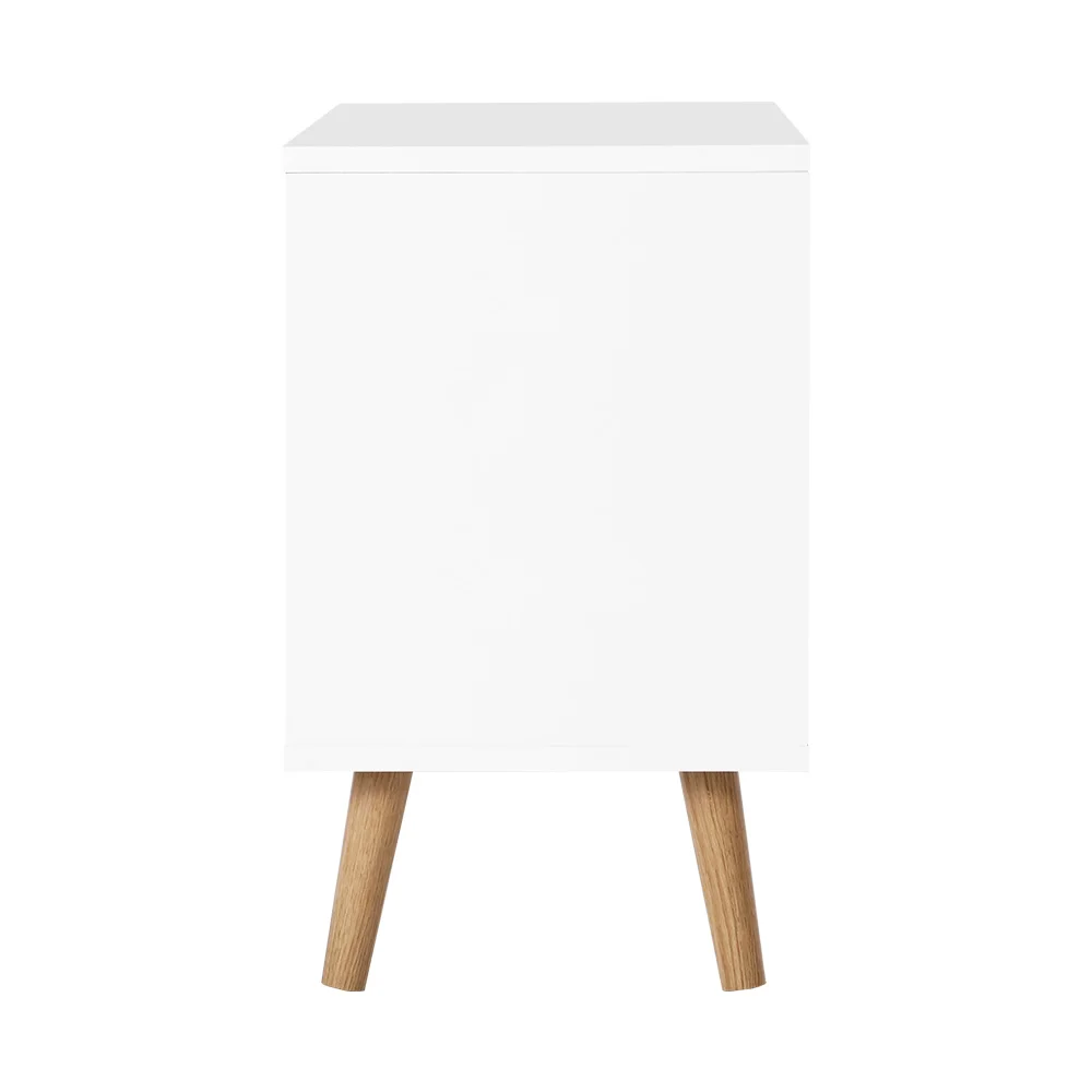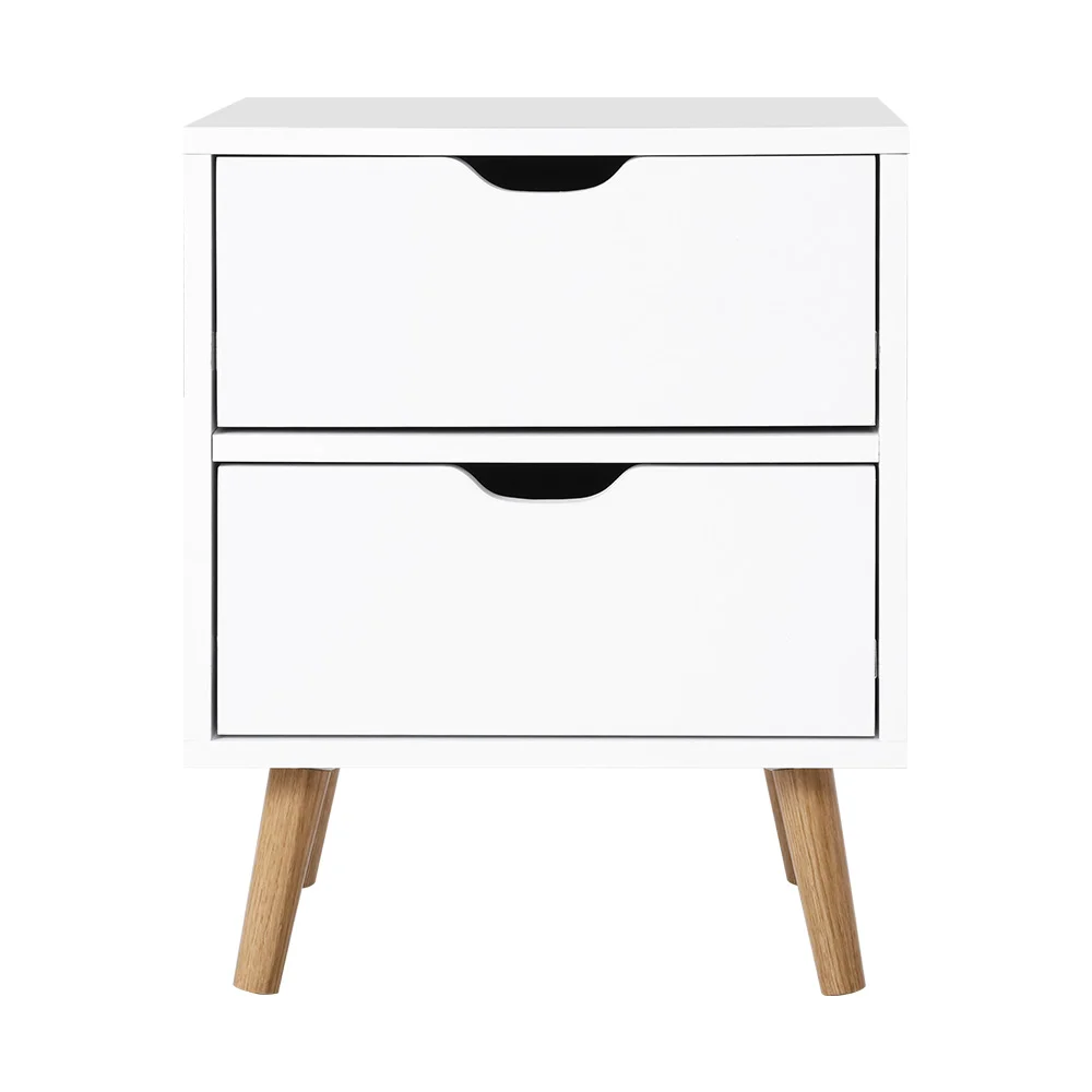 Discover the perfect blend of Scandinavian style and vintage charm with the Artiss Boden Bedside Table. Crafted from quality particle board with a smooth paper veneer finish, this table is a chic addition to any room. Its splayed legs offer a unique touch, while the two spacious drawers with anti-rust slides provide ample storage. Featuring air gap handles and a reinforced structure, it's as functional as it is stylish. Easy to clean and assemble, it's the ideal choice for modern living.