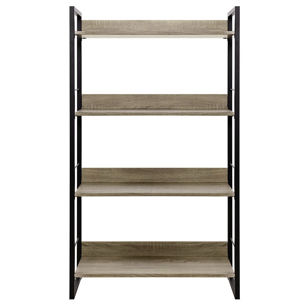 Artiss Bookshelf 4 Tiers, Engineered Wood & Metal, 70.5x30x125cm, Black & Oak, Modern Display Shelf, Durable & Stylish