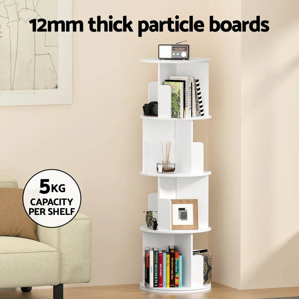 Artiss Bookshelf 4 Tiers Particle Board White 40x40x130cm - Edie Rotating Display Shelf for Home & Office