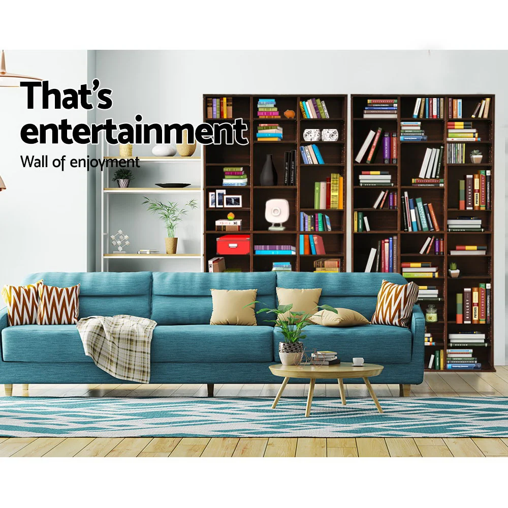 Artiss BERT Brown Bookshelf CD/DVD Storage Rack - Adjustable Particle Board, Holds 1116 CDs/528 DVDs, 102x23.5x194.5cm