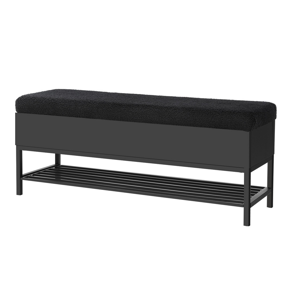 Artiss Boucle Storage Ottoman, MDF Frame, 110cm, Black, Hidden Storage, Open Shelf, High-Resilience Foam Padding