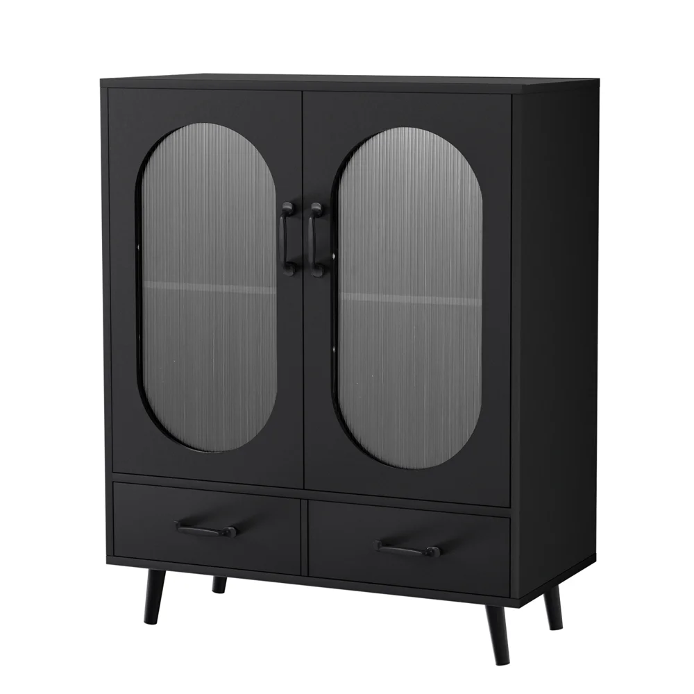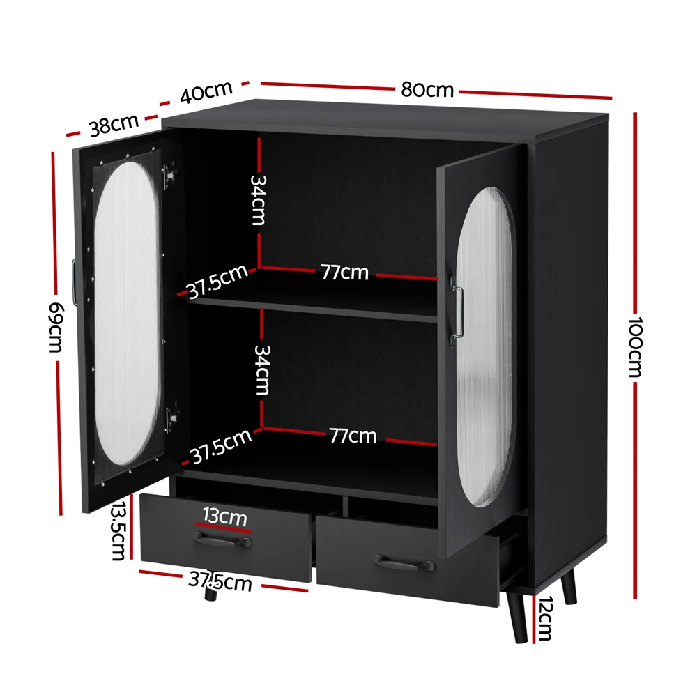 Artiss Buffet Sideboard, Particle Board, 80x40x100cm, Black, Double Doors, Ample Storage, Easy Assembly, 1-Year Warranty