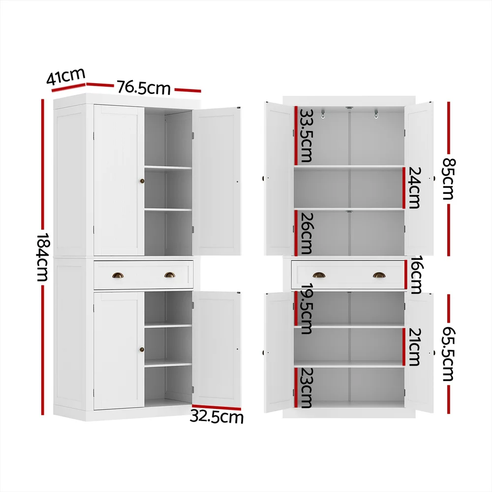 Artiss Buffet Sideboard Cupboard MDF White 76.5x41x184cm - Stylish Storage with Drawers & Shelves, Easy Assembly