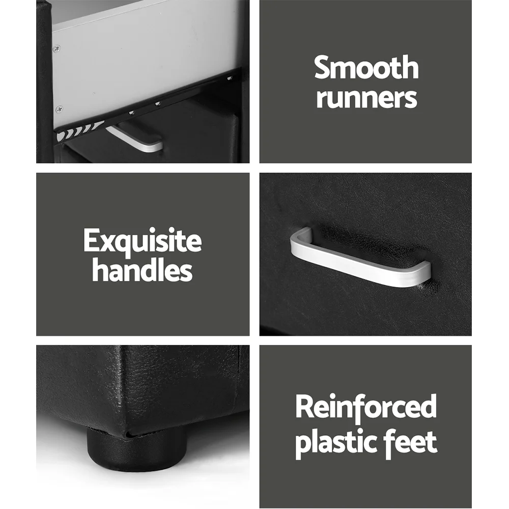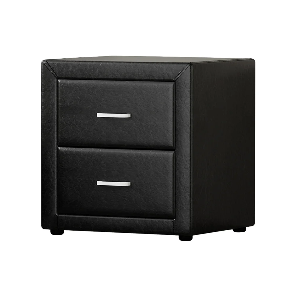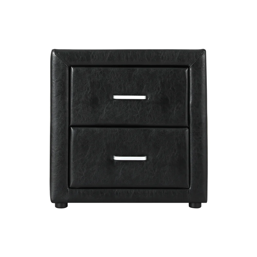 Artiss CADEN Black Bedside Table, 2 Drawers, PVC Leather, 48x40x50cm, Modern MDF Frame, Aluminium Handles, Easy Assembly
