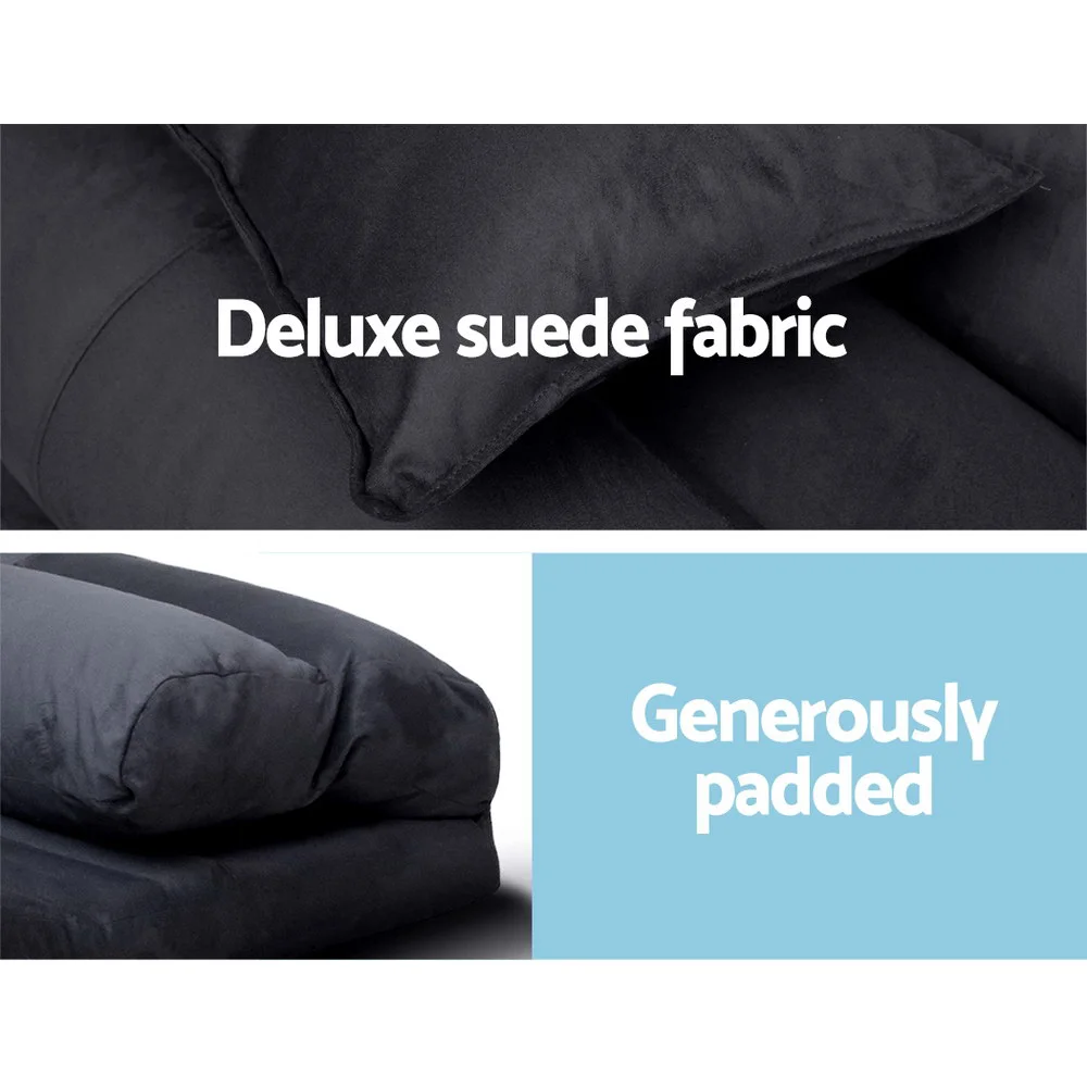Artiss Charcoal 2-Seater Floor Lounge Sofa Bed with Adjustable Positions, Suede Fabric, Steel Frame, and Pillows