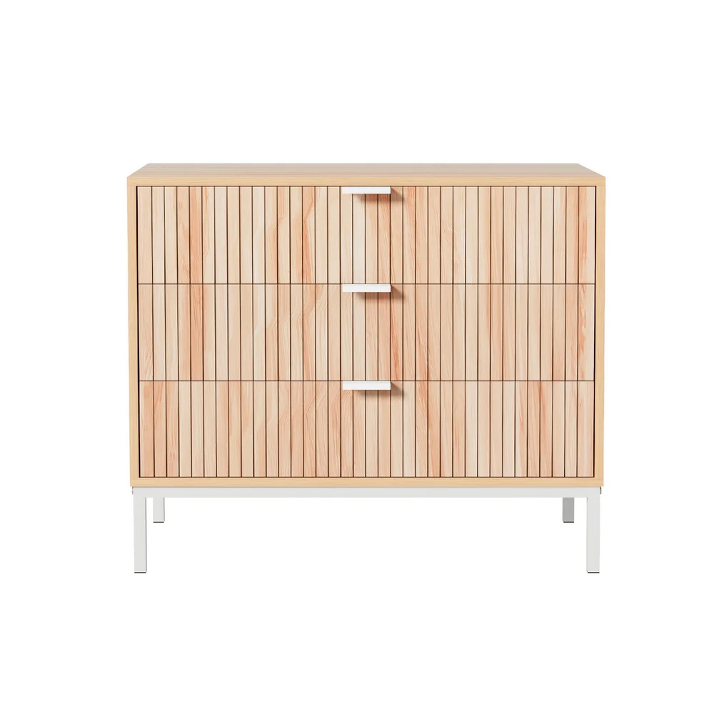 Artiss Chest of Drawers, Particle Board, Pine & White, 80x40x69cm, 3 Drawer Storage with Metal Legs & Handles