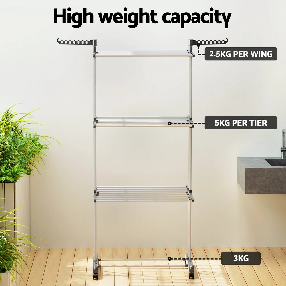 Artiss 3-Tier Foldable Clothes Drying Rack with Wheels - Sturdy, Space-Saving Design, 20kg Capacity, Easy Storage