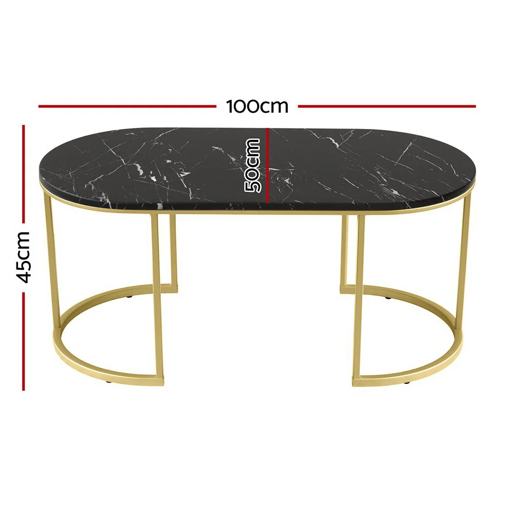 Artiss Coffee Table, Marble Effect MDF, 100x50x45cm, Black & Gold, Modern Metal Frame, Easy Assembly