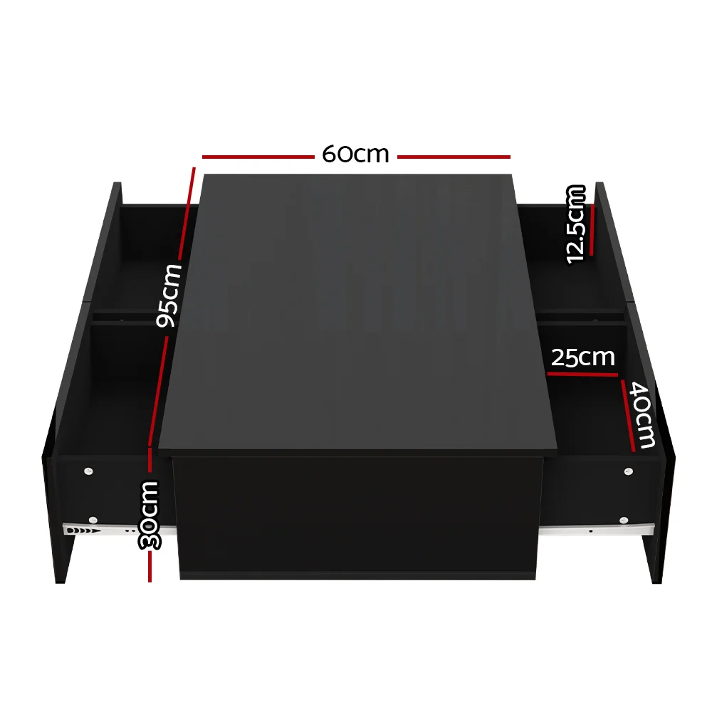Artiss Coffee Table, Particle Board, Black, 95x60x31cm, 4 Drawers, Modern Design, UV High-Gloss Finish, Easy Assembly
