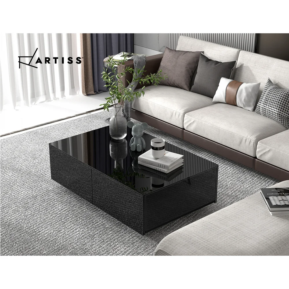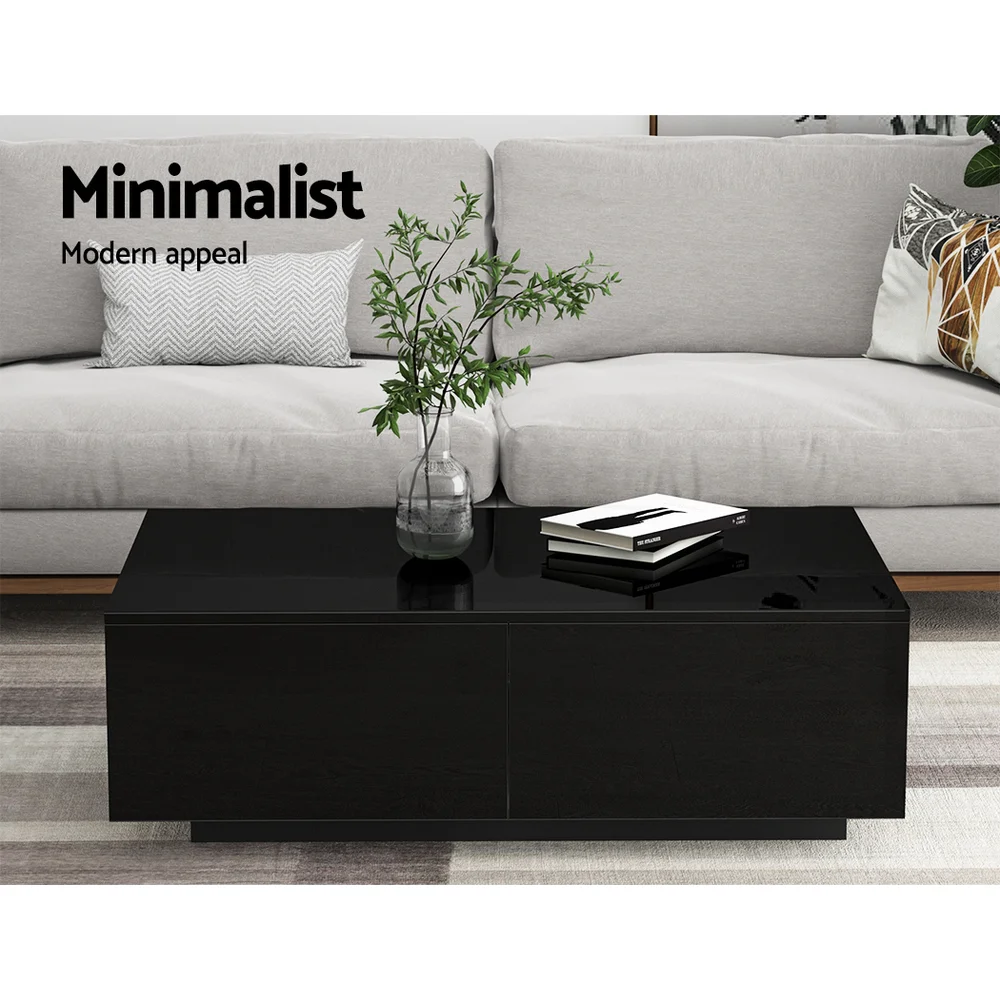 Transform your living space with the Artiss Coffee Table. Designed for modern Aussie homes, this sleek black table boasts four spacious drawers, perfect for stashing away remotes, books, and more. With its handle-less, contemporary design and UV high-gloss finish, it's both stylish and easy to maintain. The durable particle board construction ensures longevity, while the anti-rust runners promise smooth drawer operation. Ideal for any room, it's a blend of practicality and elegance.