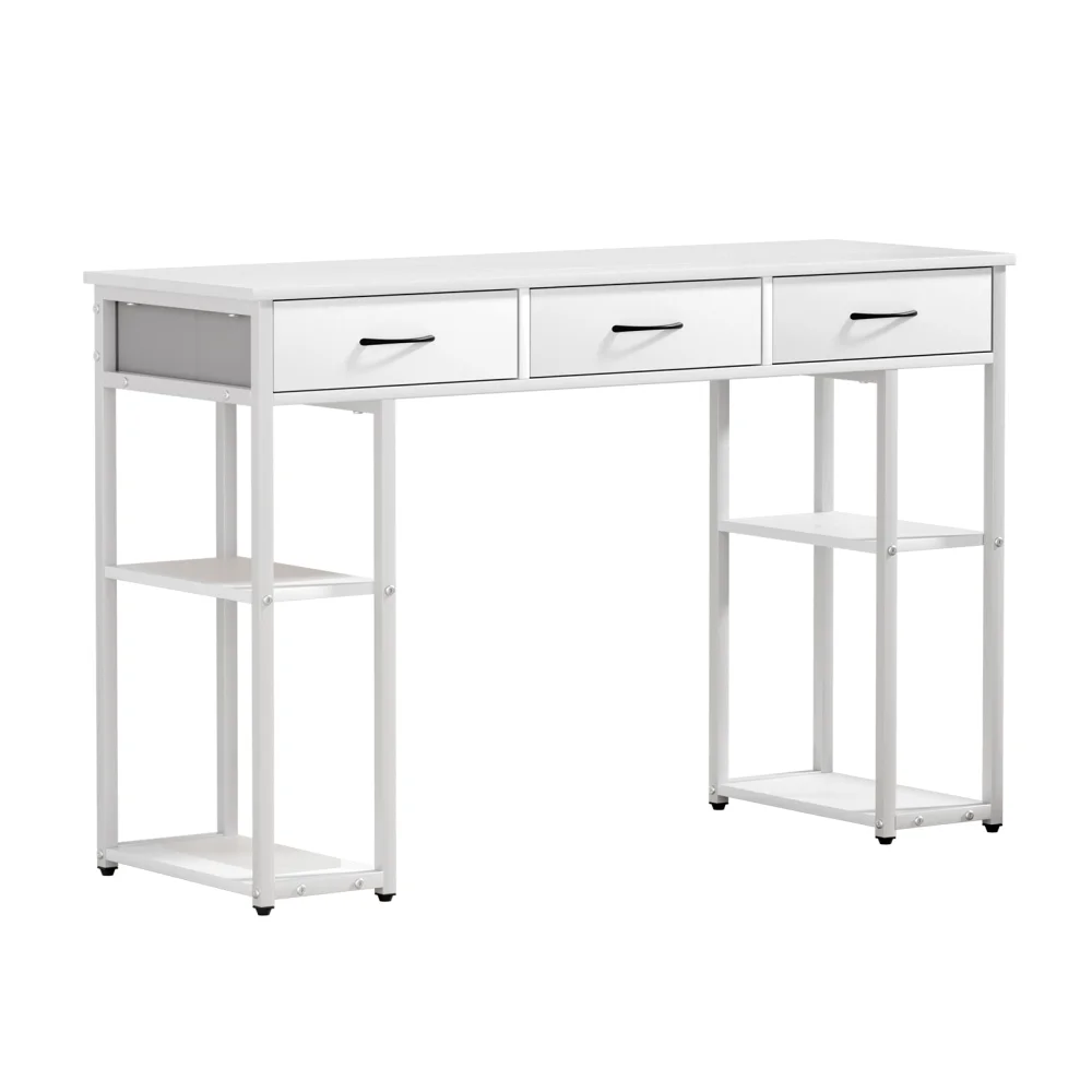 Spruce up your home office with the bright and spacious Artiss Computer Desk. This 120cm long and 40cm wide desk features a premium particleboard desktop with four open shelves and three drawers for all your workspace needs. It can support up to 60kg, making it perfect for a laptop or desktop computer. The sturdy iron frame, easy-to-clean surface, smooth edges, and anti-slip, anti-scratch feet ensure safety and durability. Ideal for studying or working from home, this desk combines style and function seamlessly.