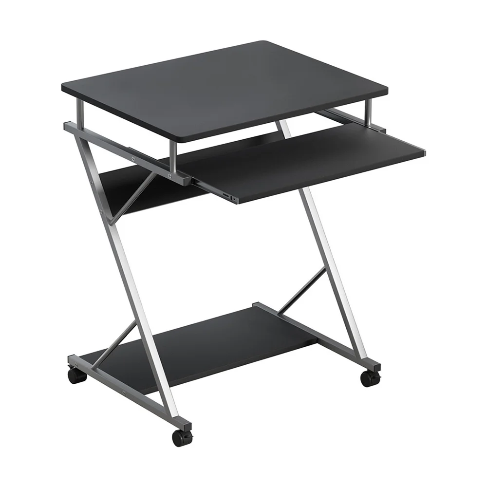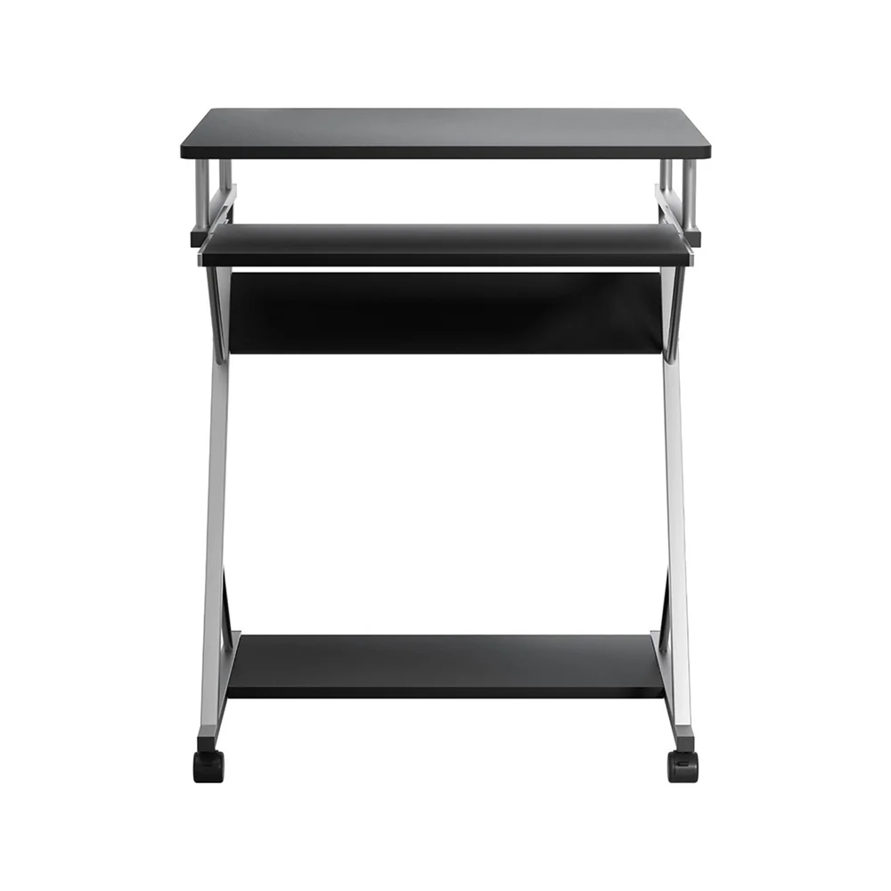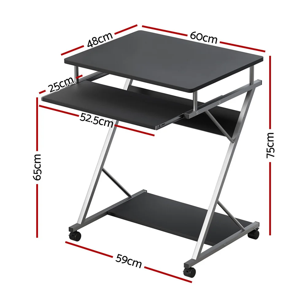 Artiss 60CM Black Computer Desk with Sliding Keyboard Tray, 15mm Thick Top, Z-Shape Steel Frame, & 360° Castor Wheels