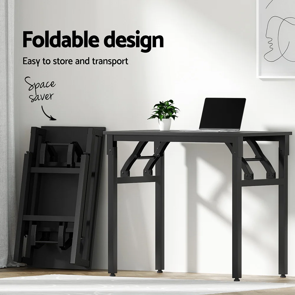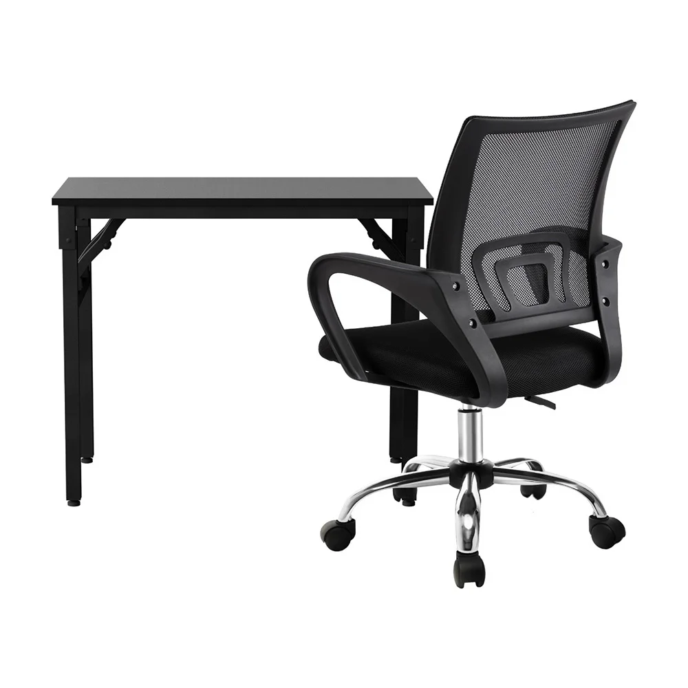 Artiss Foldable Computer Desk and Mesh Office Chair Set, 80x40cm Black, Steel Frame, Adjustable, Home Study Combo
