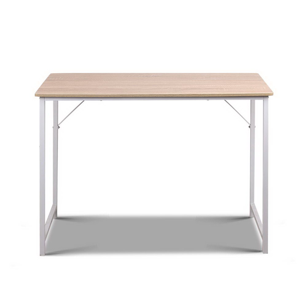Artiss Computer Desk, Oak Particle Board, 100cm, White & Oak, Stylish Workstation, Easy Assembly, Compact Design