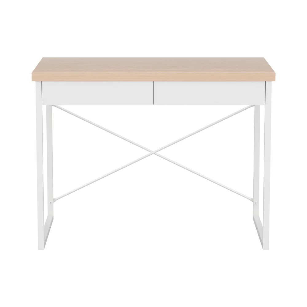 Introducing the Artiss Karl Computer Desk, a seamless blend of style and functionality perfect for your home office or study. Crafted with an exceptionally thick particle board and a melamine veneer finish, this desk offers a smooth, durable surface that’s easy to maintain. The desk features two spacious drawers with concealed handles, providing ample storage for your essentials. Built with a U-shape, powder-coated steel frame and a unique X-brace, it promises unbeatable stability and durability. Measuring 100cm in length, this oak and white desk is your reliable work companion for years. Assembly required.