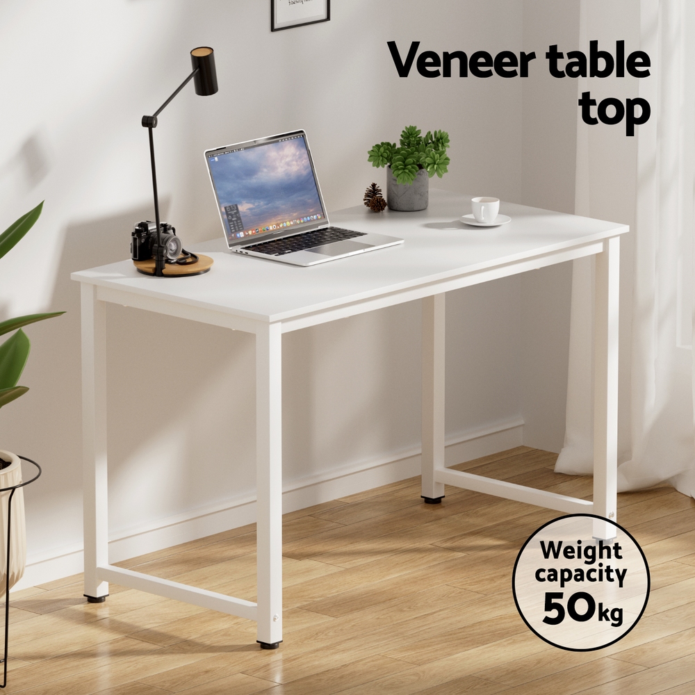 Artiss 120cm Computer Desk & PU Leather Chair Set - White, Metal Frame, Anti-Scratch, Adjustable, Modern Workspace Combo