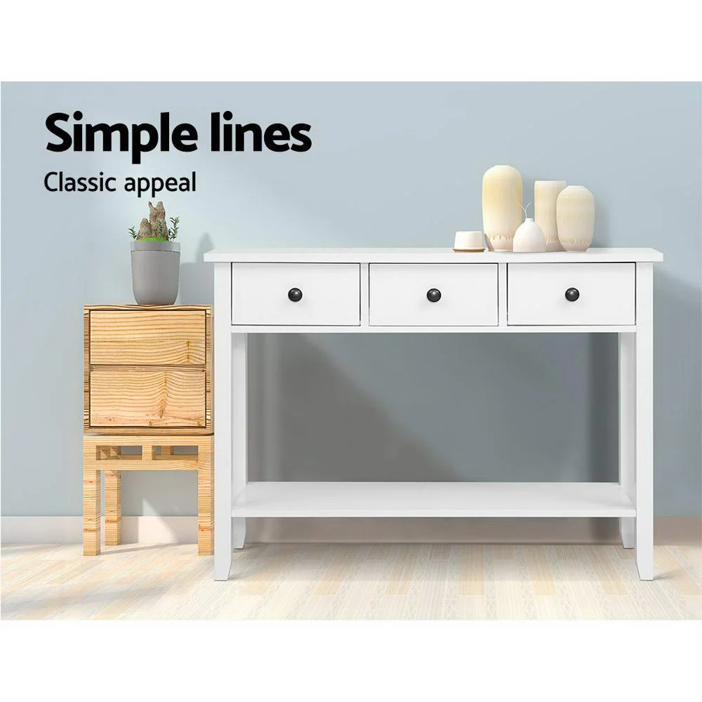 Artiss 100CM White Console Table - 3 Drawers, E1 MDF, NC Lacquer Finish, Vintage Handles, Stylish Entryway Decor