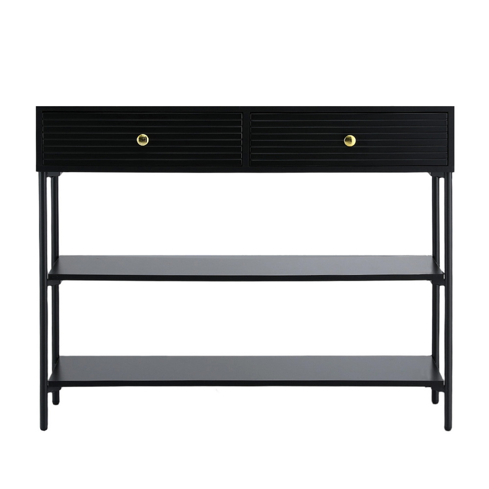 Artiss Console Table 3-Tier Black 100cm – Modern Entryway Hall Table with Drawers, Shelves, Metal Frame, E1 MDF