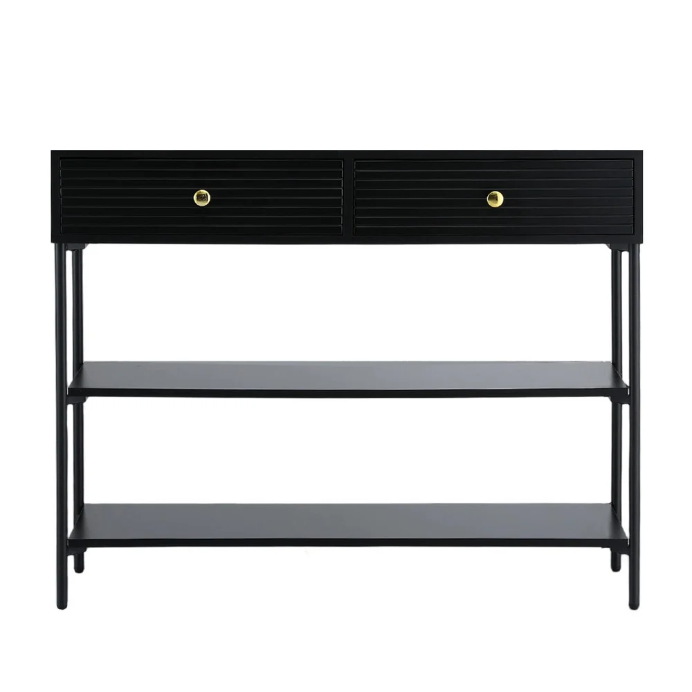 Artiss 100CM Black Console Table with 2 Drawers, Vintage Metal Handles, E1 MDF, 2-Tier Shelf for Entryway & Living Room