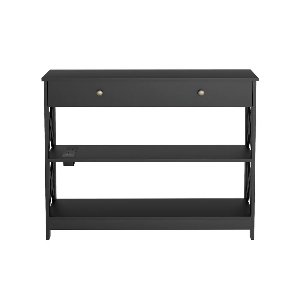 Artiss Console Table, MDF, 100x30x80cm, Black, 3-Tier with USB Outlets, Sleek Handles, Easy Assembly, 1-Year Warranty