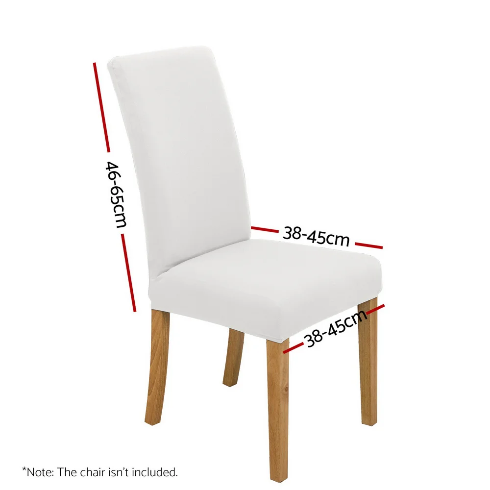Refresh and protect your dining chairs effortlessly with Artiss Dining Chair Covers. Crafted from premium spandex and polyester, these stretchable, removable slip covers offer a secure, comfortable fit and shield your chairs from spills and stains. Easy to install and wash, they're perfect for everyday dining, special events, or commercial settings. Suitable for most regular chairs, these elegant white covers bring style and practicality to homes, hotels, restaurants, and celebrations alike. Please cheque chair dimensions before purchase.