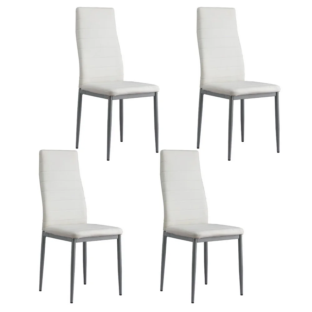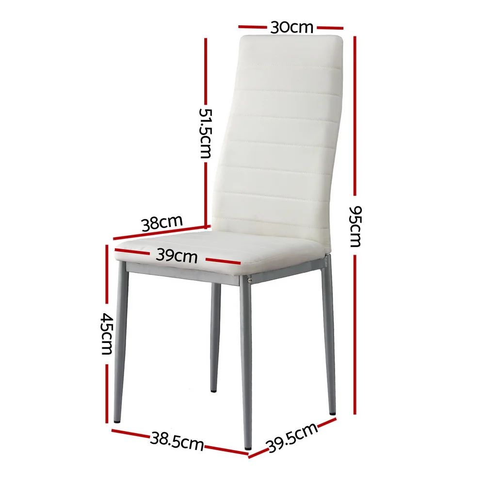 Artiss Astra Dining Chairs Set of 4, White Leather Look, Channel Tufted, Waterproof, Metal Legs, 39x43x95cm