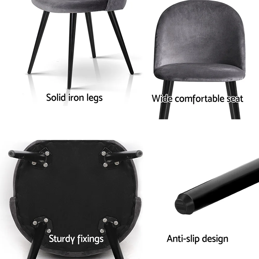 Artiss Velvet Dining Chairs Set of 4 - Dark Grey, Solid Iron Legs, Anti-Slip, Easy Assembly, 150kg Capacity