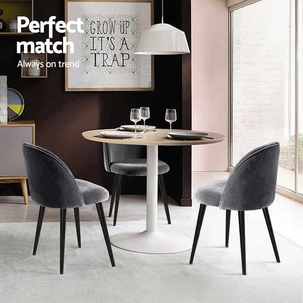 Transform your dining space with the Artiss Dining Chairs Set of 4 in elegant velvet. These chairs blend modern design with supreme comfort, featuring soft velvet upholstery in a versatile dark grey that complements any decor. With a robust 150kg capacity, sturdy iron legs, and wide, inviting seats, they promise durability and style. The anti-slip floor protectors ensure your floors remain scratch-free, while the easy assembly design makes set up a breeze. Elevate your dining experience with these chic, comfortable chairs, backed by a 1-year warranty for peace of mind.