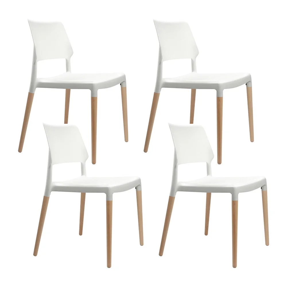 Artiss Dining Chairs Set of 4 White Belloch Replica, Solid Beech Wood Legs, Stackable, Indoor Outdoor Kitchen Use