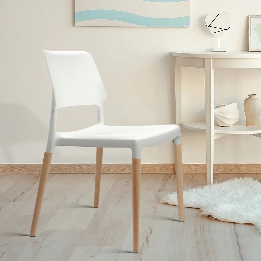 Elevate your dining experience with the Artiss Dining Chairs Set of 4. Inspired by the classic Belloch design, these versatile chairs are perfect for indoor and outdoor use. Each chair features a comfortable curved PP plastic seat and back in a chic matte white finish, supported by solid beech wood legs with reinforced steel fixings. Thoughtfully designed with anti-slip protectors and stackable for easy storage, these chairs blend style, practicality, and comfort—ideal for any kitchen, dining area, living room, or café.