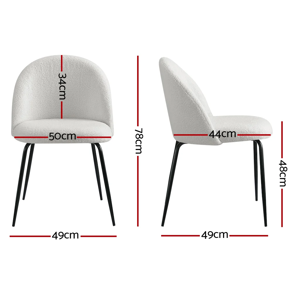 Artiss Dining Chairs Set of 2, Sherpa Fabric, White, 49x49x78cm, Luxurious Comfort, Modern Design, Versatile Use