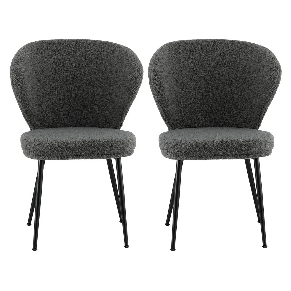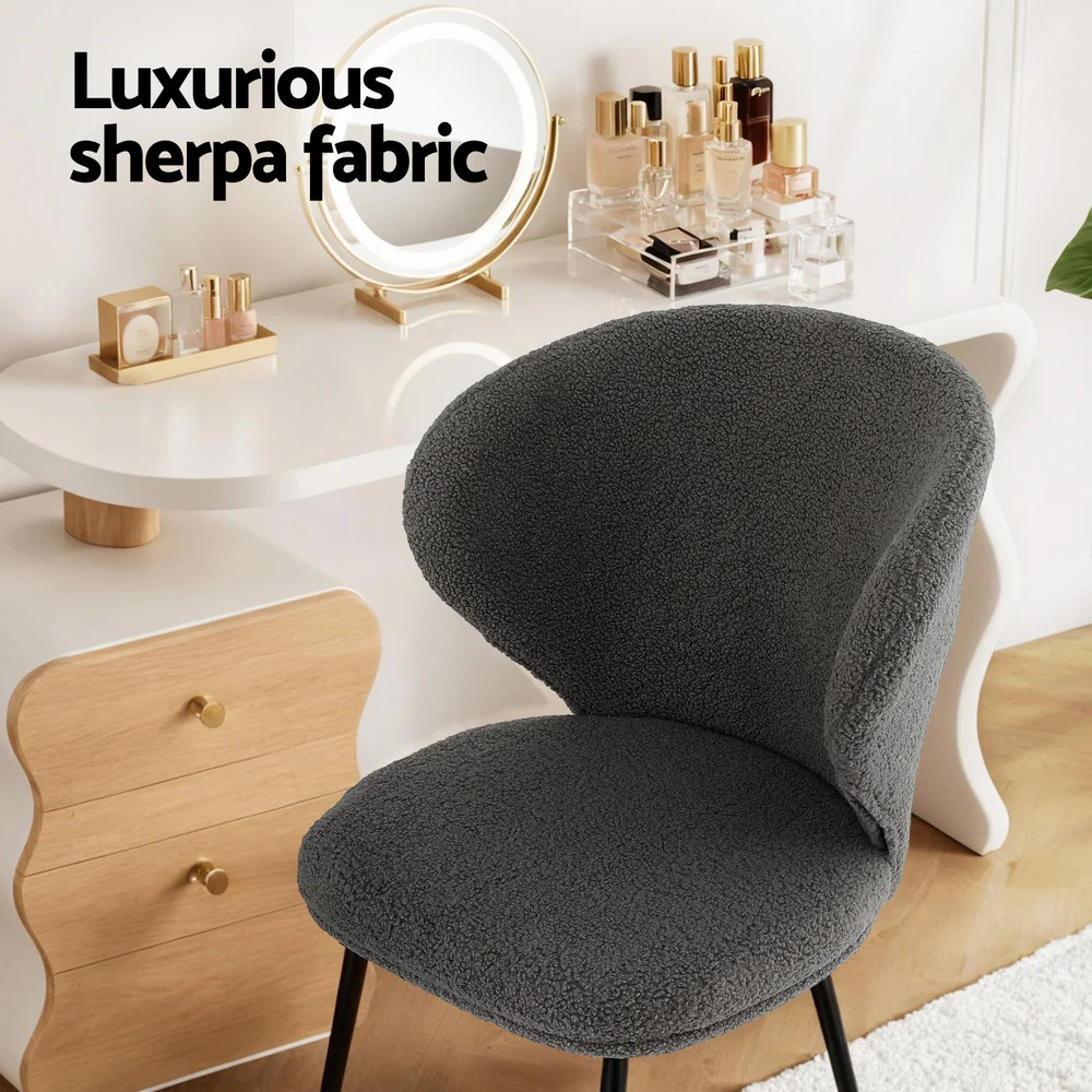 Artiss 2x Grey Sherpa Bouclé Dining Chairs - Wing Back Design, High-Density Foam, Steel Legs, 150kg Capacity, 60x50x90cm