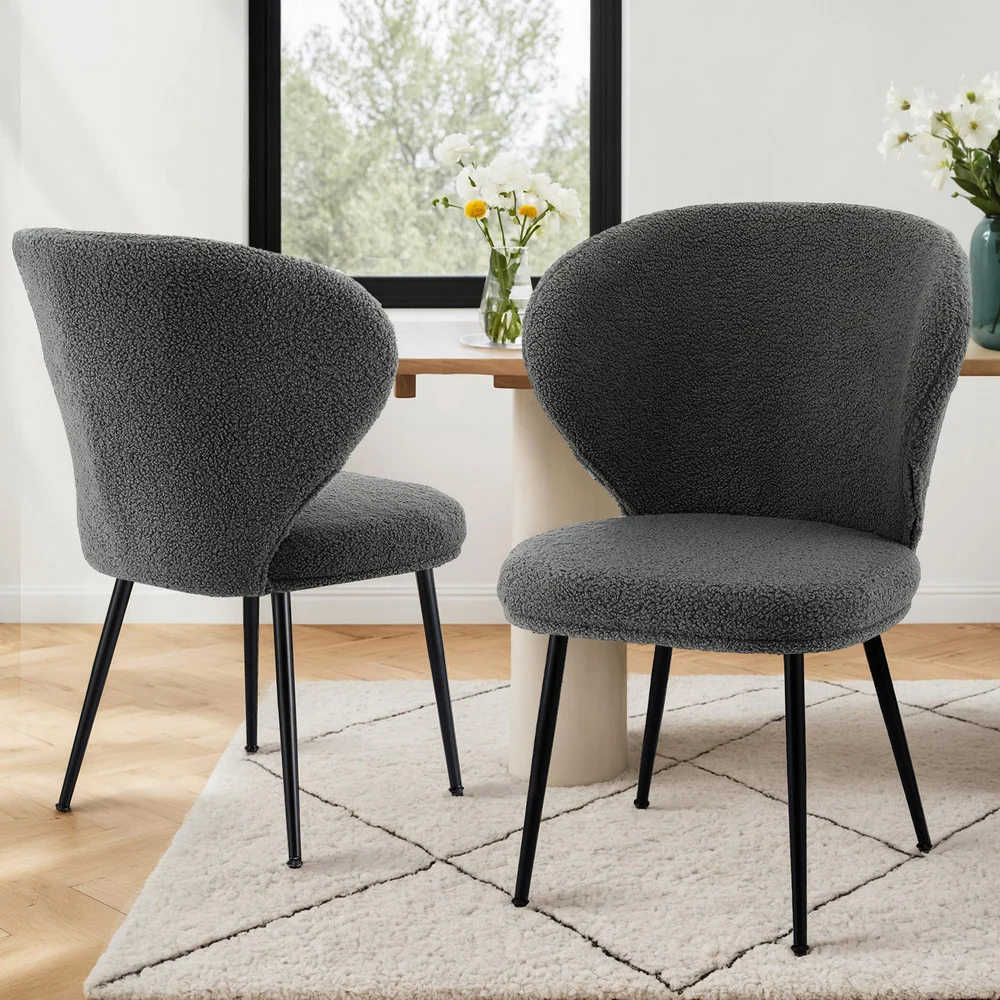 Transform your dining area with the elegant Artiss 2x Dining Chairs in Sherpa Bouclé Wing Back Grey. These chairs boast a contemporary design with a curvy wing backrest and premium Sherpa fabric upholstery, ensuring both style and comfort. The ergonomic shell design promotes airflow, while high-density foam cushions provide plush seating. Sturdy powder-coated steel legs with non-slip protectors offer stability on various surfaces. Ideal for any room, these chairs support up to 150kg and complement most decors. Easy to assemble with included instructions, these chairs are also simple to maintain by spot-cleaning with a damp cloth. Enjoy a modern touch to your home with these versatile chairs.