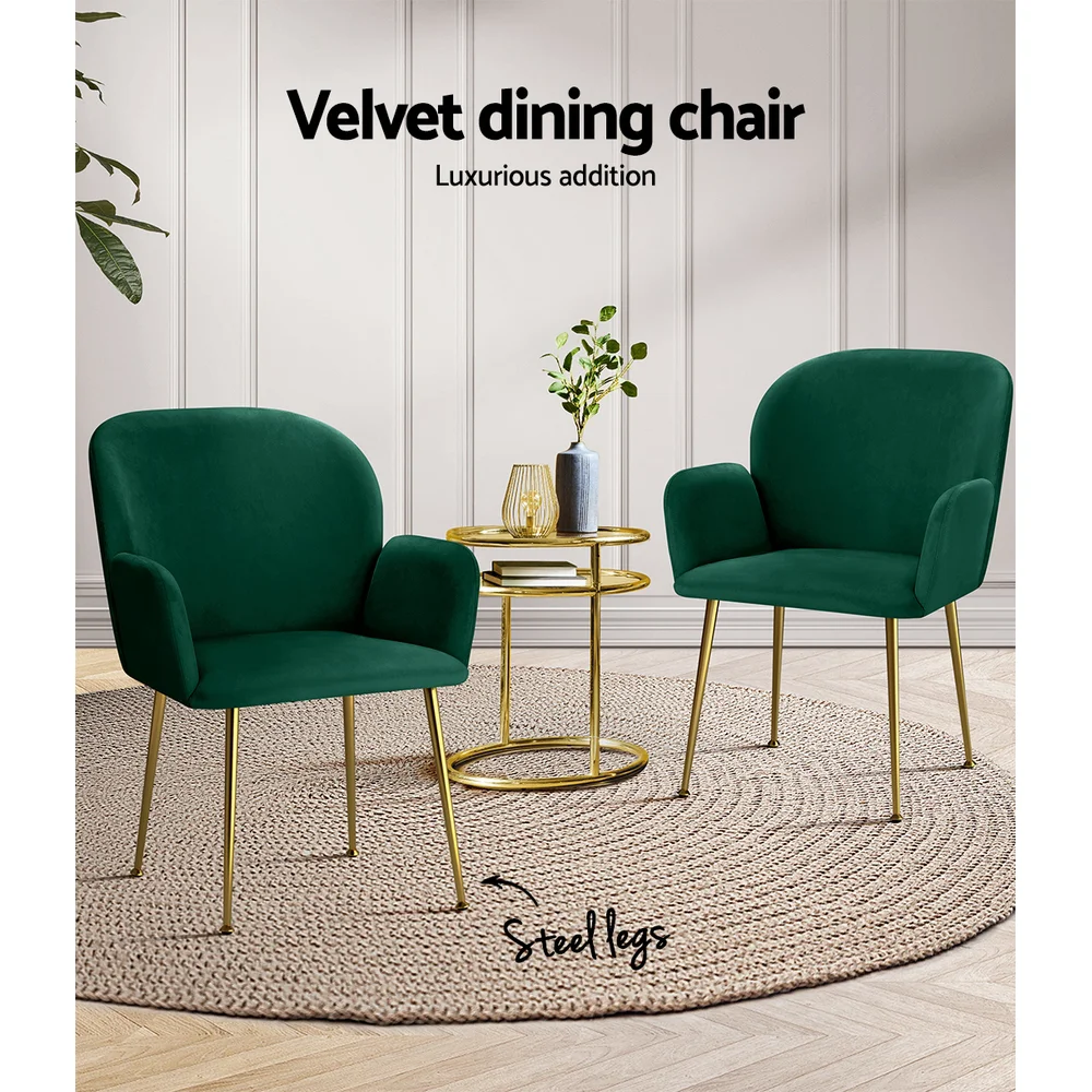 Artiss Dining Chairs Set of 2, Velvet Armchair, Green, 54x58x83cm, Luxurious Comfort, Sturdy Steel Legs, Easy Assembly