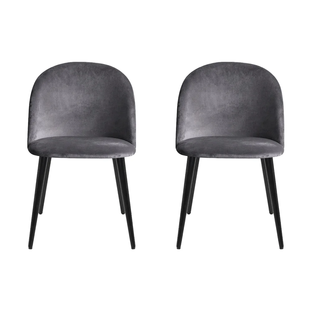 Artiss Velvet Dining Chairs Set of 2 - Dark Grey, Solid Iron Legs, 150kg Capacity, Anti-Slip, 48x49x78cm, Easy Assembly