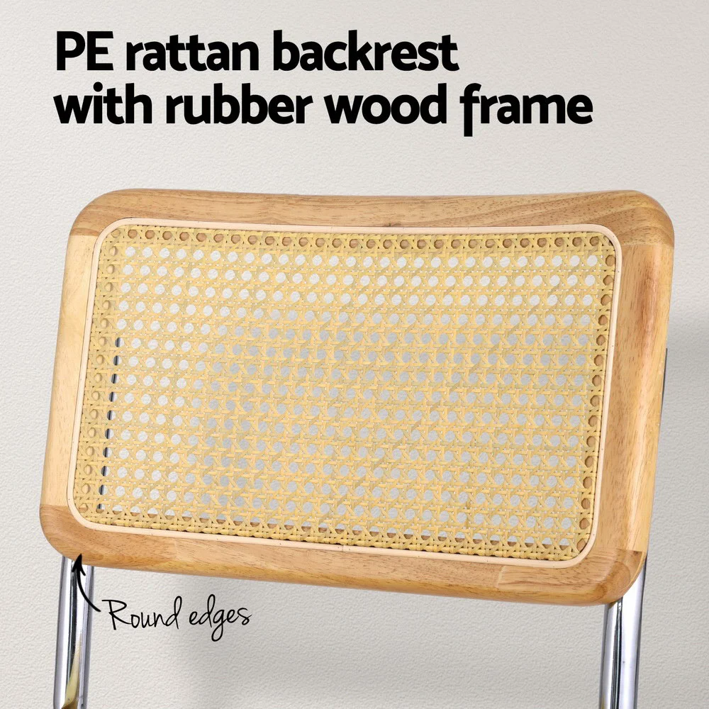 Artiss Set of 4 PU Leather Rattan Cantilever Dining Chairs - Brown, Stainless Steel Frame, 150kg Capacity, 48x48x84cm