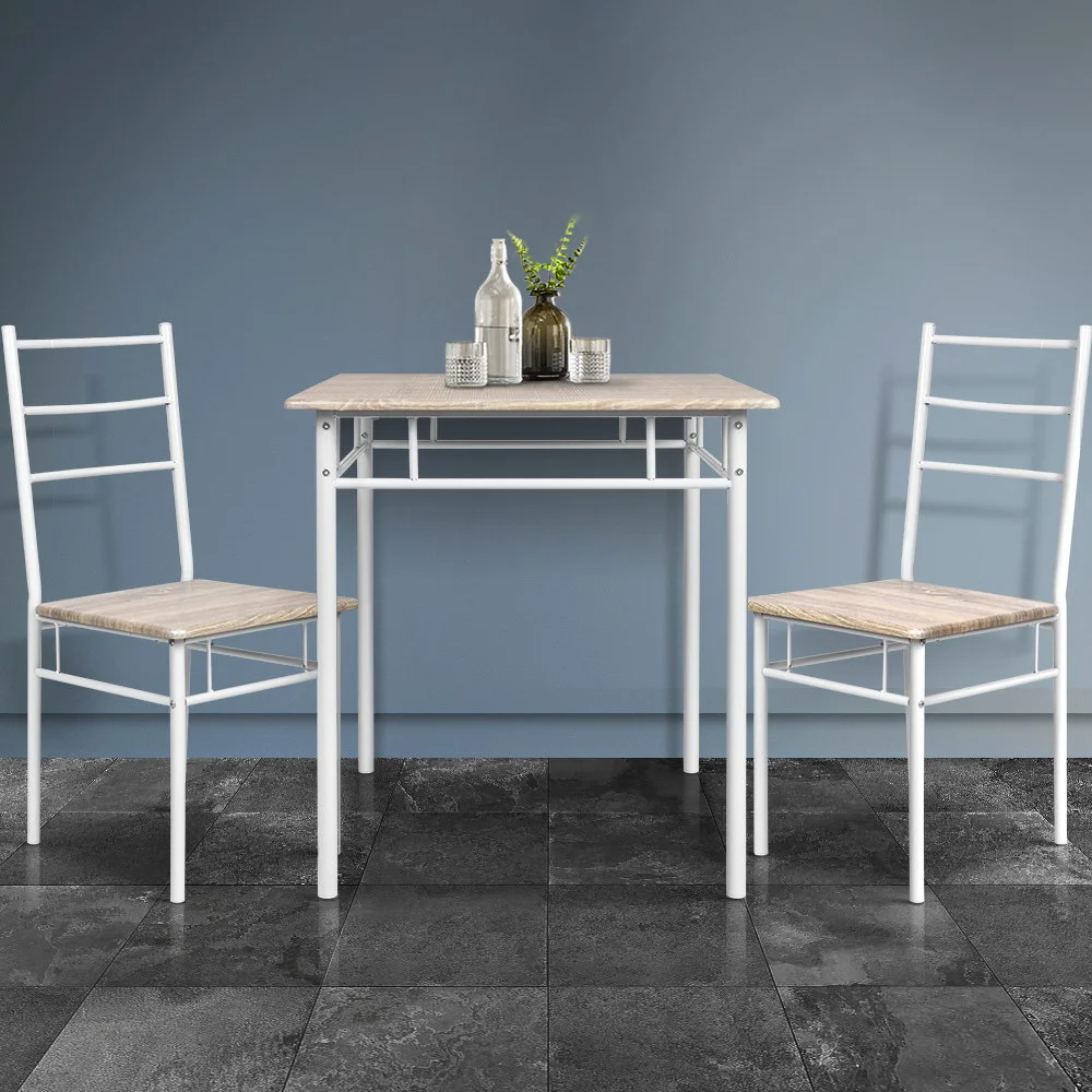 Artiss Machal 3-Piece Dining Set - Natural Oak, Industrial Design, Particle Board & Steel, 70cm Table, Easy to Clean