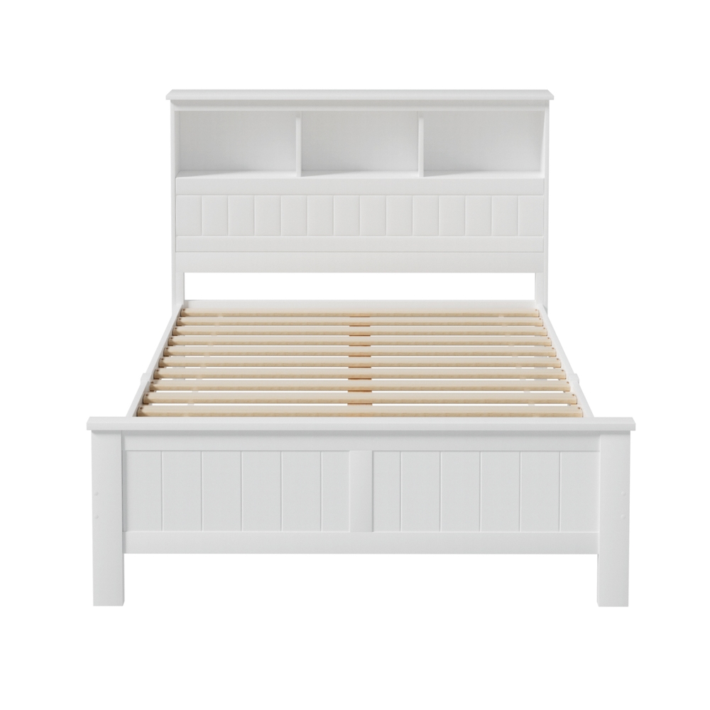 Artiss Double Bed Frame Wooden Pine with 3 Storage Shelves, White, Sturdy Slatted Base, Headboard, Kids/Adults