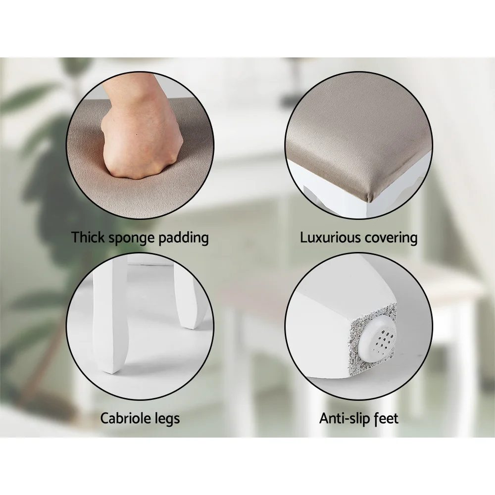 Artiss Dressing Table Stool, Velvet Fabric, 37x27x45cm, Grey - Elegant French Provincial Design, Comfortable Seating