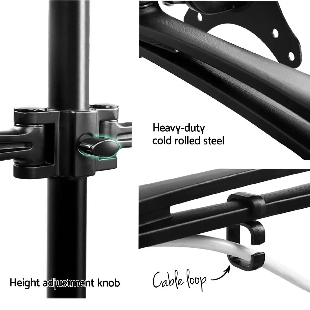 Artiss Dual Monitor Arm Desk Mount: Heavy Duty Steel, 360° Swivel, VESA Compatible, For 10”-30” Screens, Black