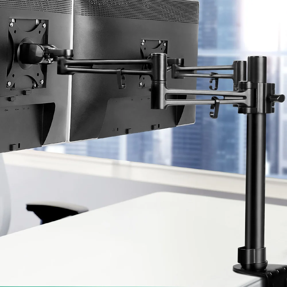 - 360-degree swivel dual monitor arms