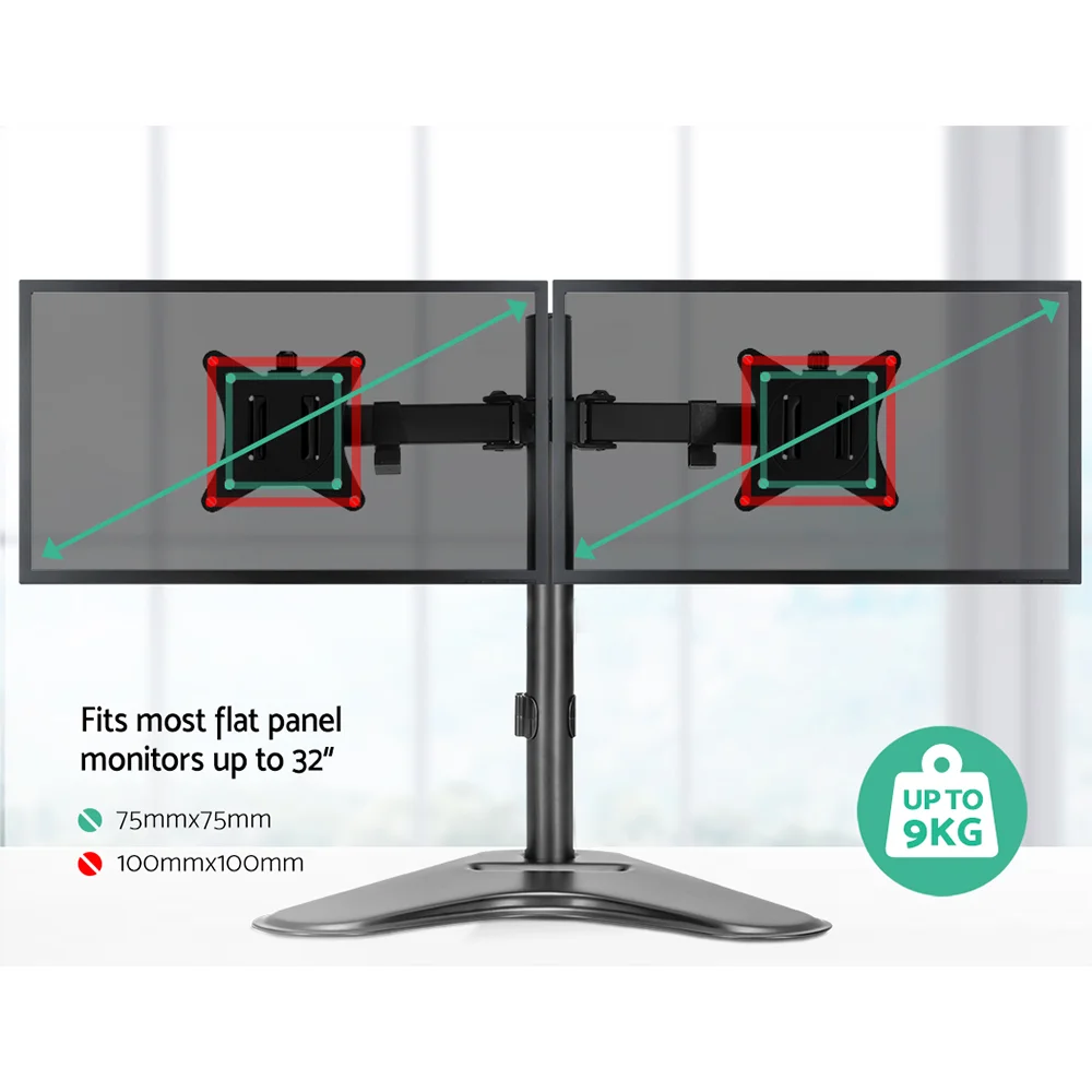 Artiss Dual Monitor Arm Stand: Freestanding, Heavy-Duty Steel, Adjustable for 17"-32" Screens, VESA Compatible, Black