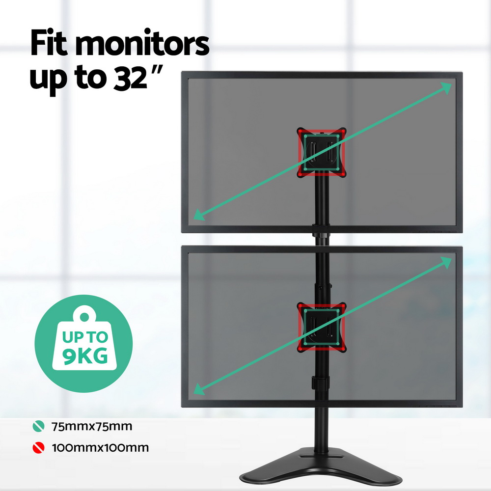 Artiss Dual Monitor Arm Stand: Freestanding, Heavy-Duty Steel, Adjustable for 17"-32" Screens, VESA Compatible, Black