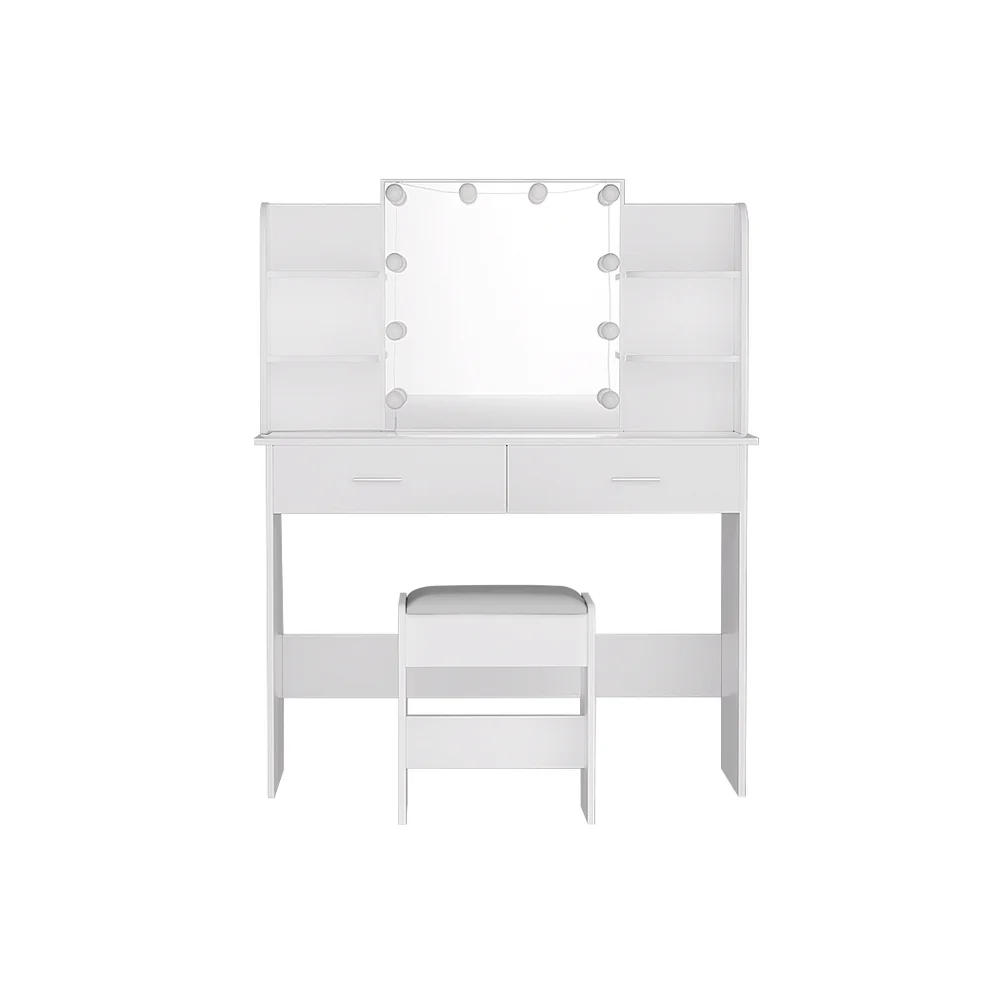 Artiss Dulcea White Dressing Table Set with 10 LED Bulbs, Storage Drawers, and PU Leather Stool – 108cm x 40cm x 135cm