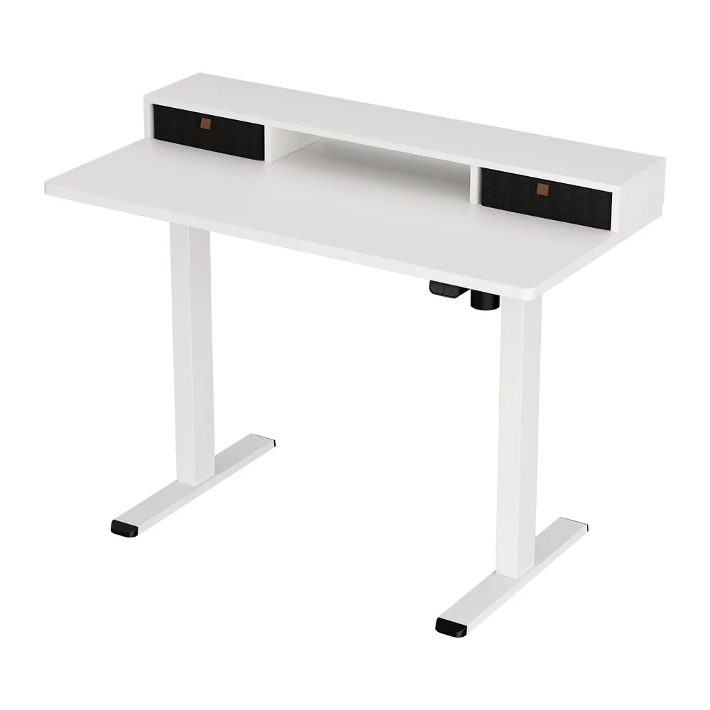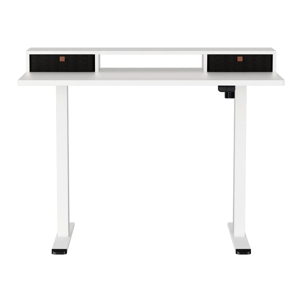 Artiss 120cm Electric Standing Desk with Motorised Height Adjustment, Storage Shelf Drawer, White, Particle Board